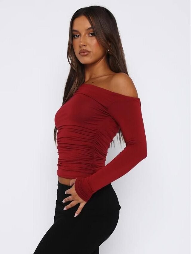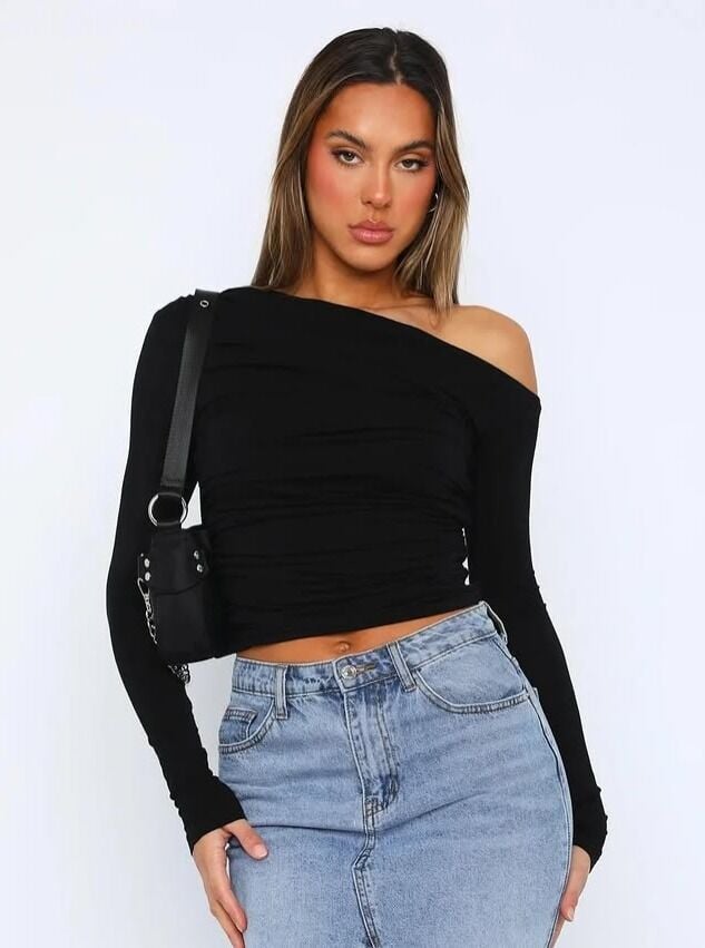 DALGIÇ KUMAŞ UZUN KOLLU AÇİK TEK OMUZ BLUZ