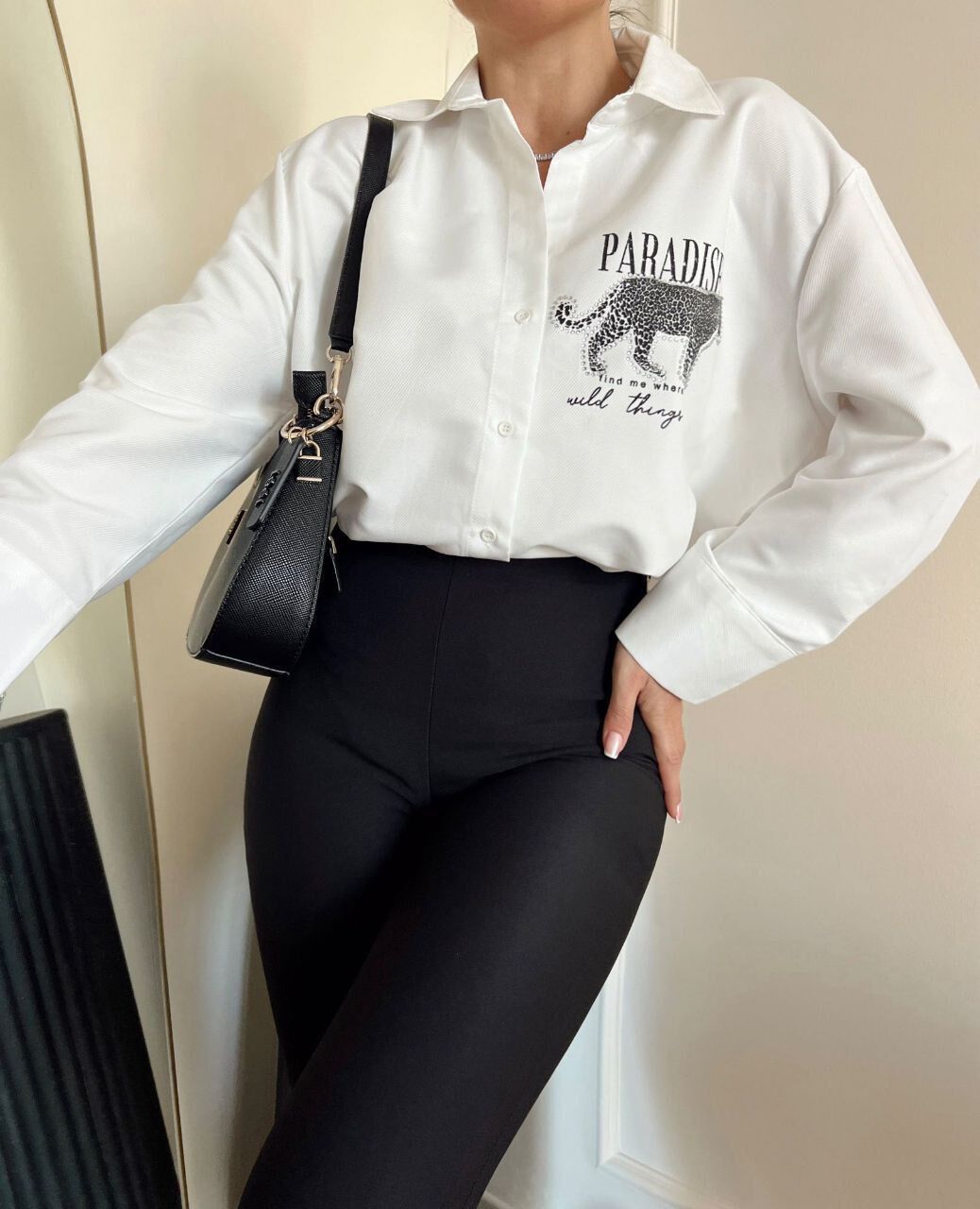 DİRİL KUMAŞ PARADİSE BASKILI TAŞLI GÖMLEK