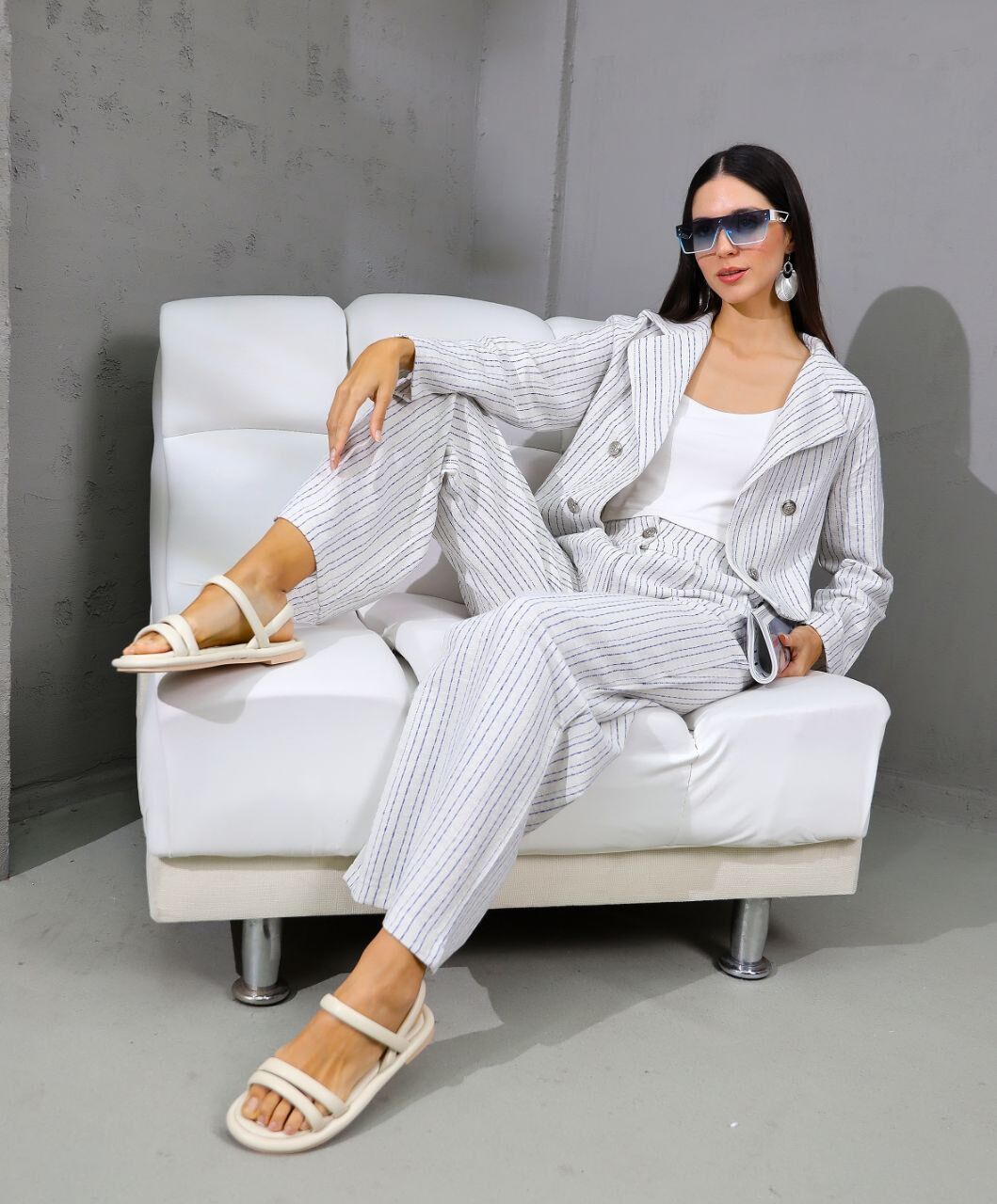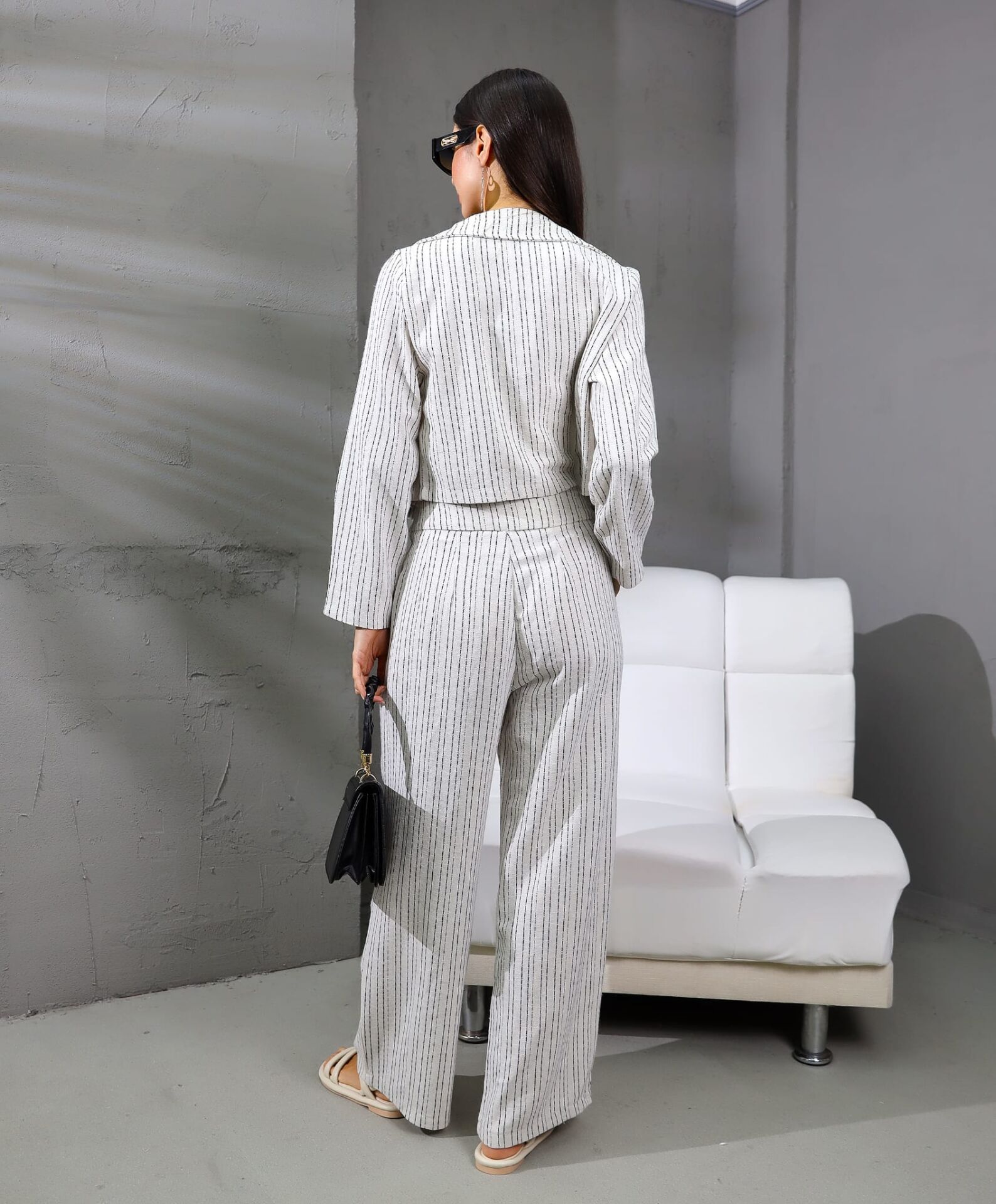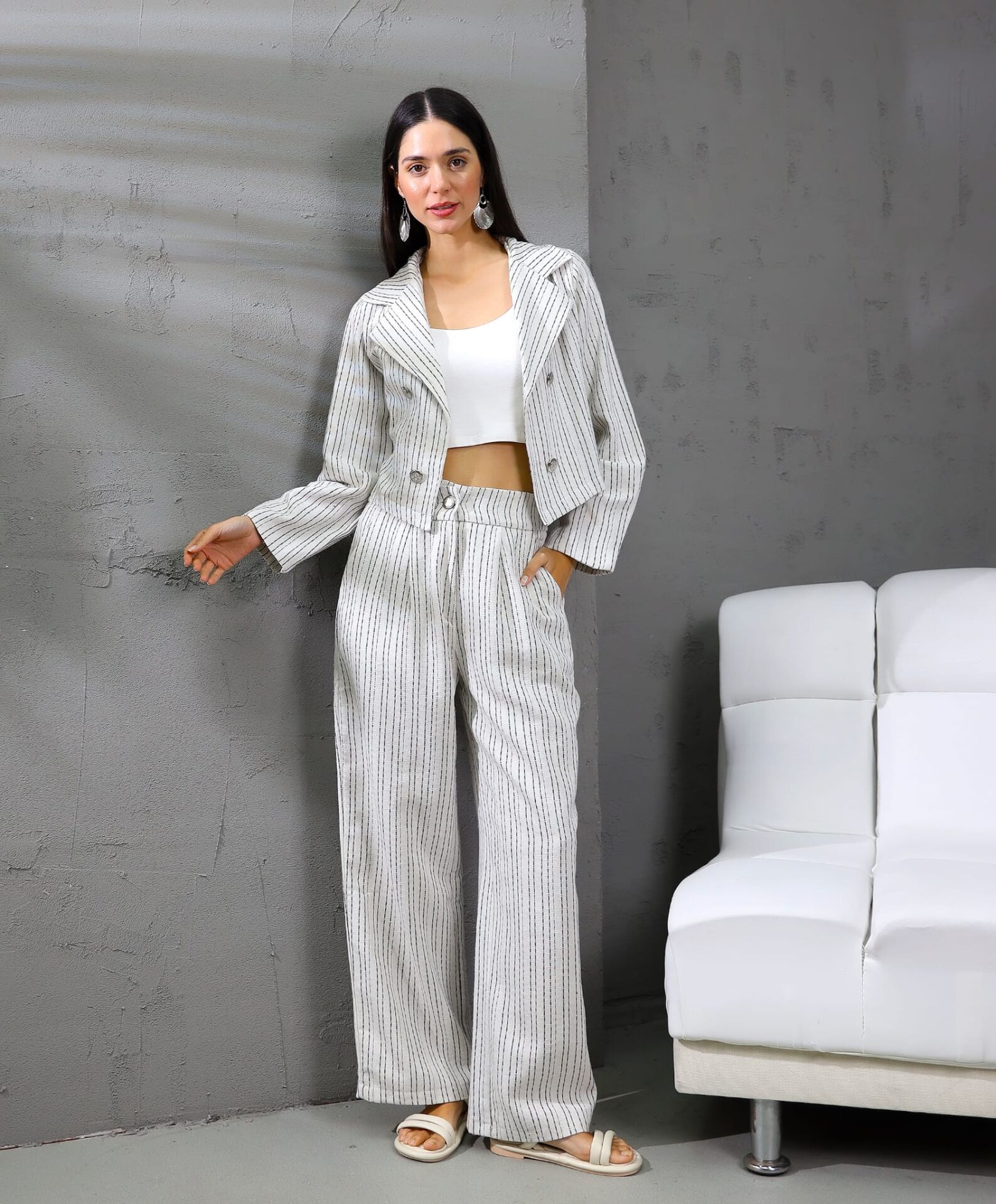 Çok şık takım. Caket, crop, pantalon.