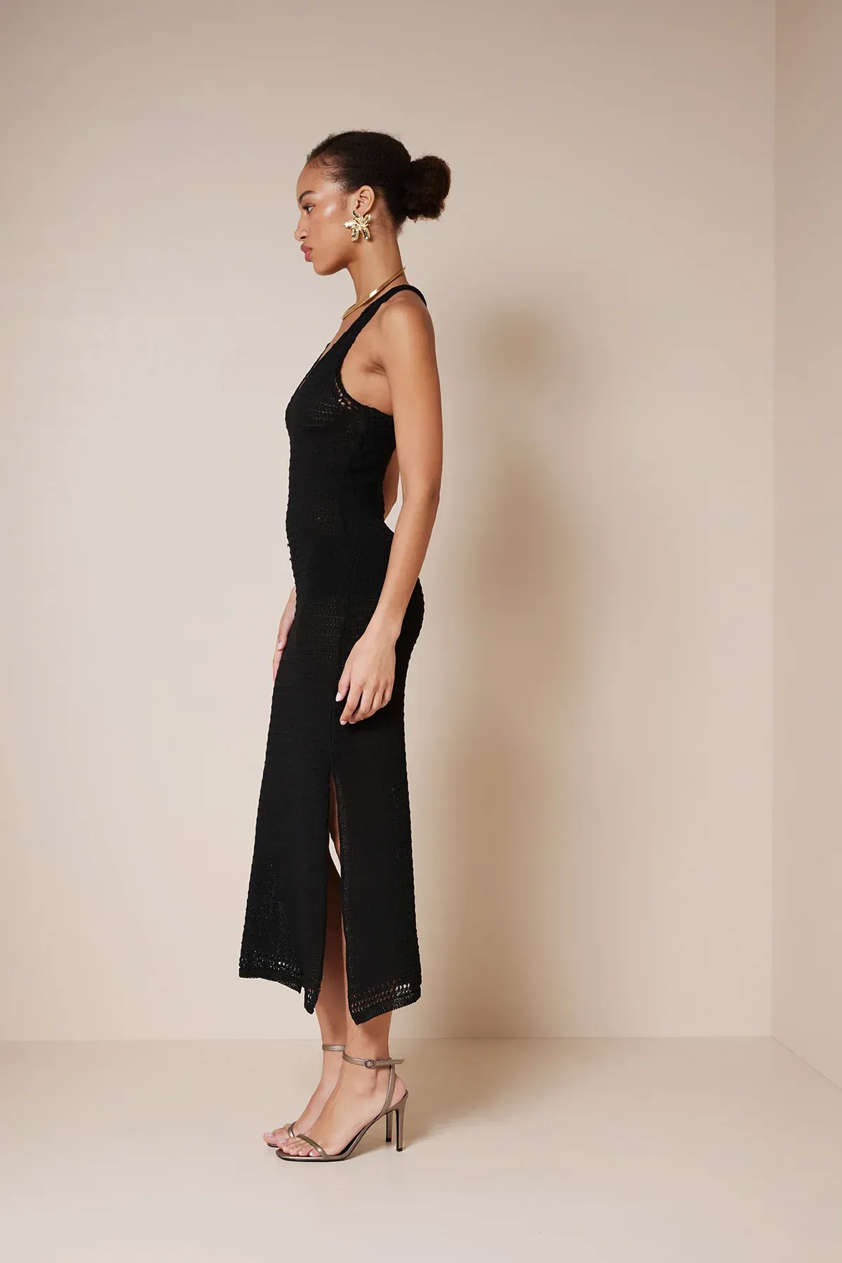 KADIN TRİKO YIRTMAÇLI ELBİSE EKRU - STD
