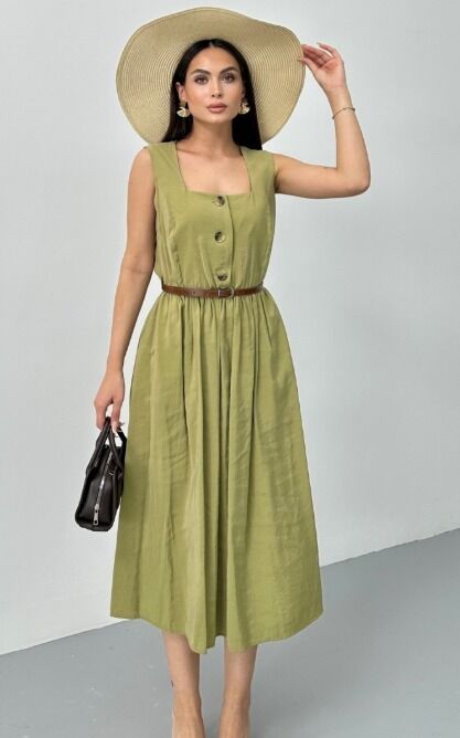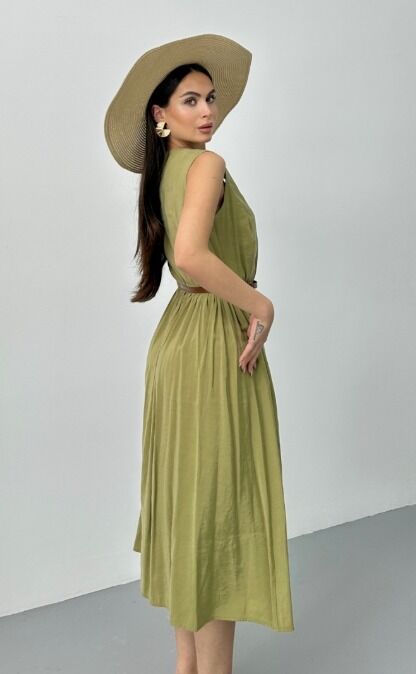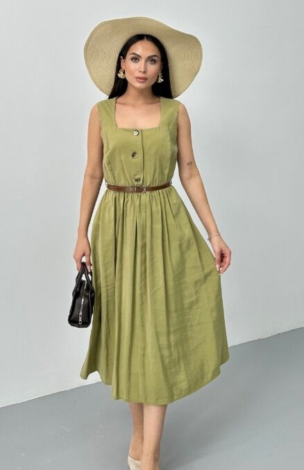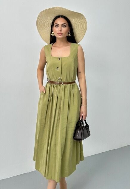KAREYAKA KEMERLİ YAĞ YEŞİLİ ELBİSE