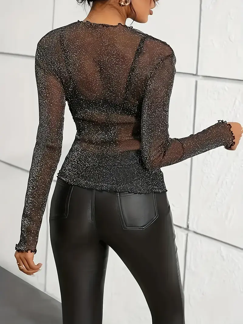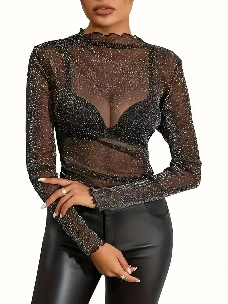 PARLAK ŞIK YARI ŞEFFAF BLUZ
