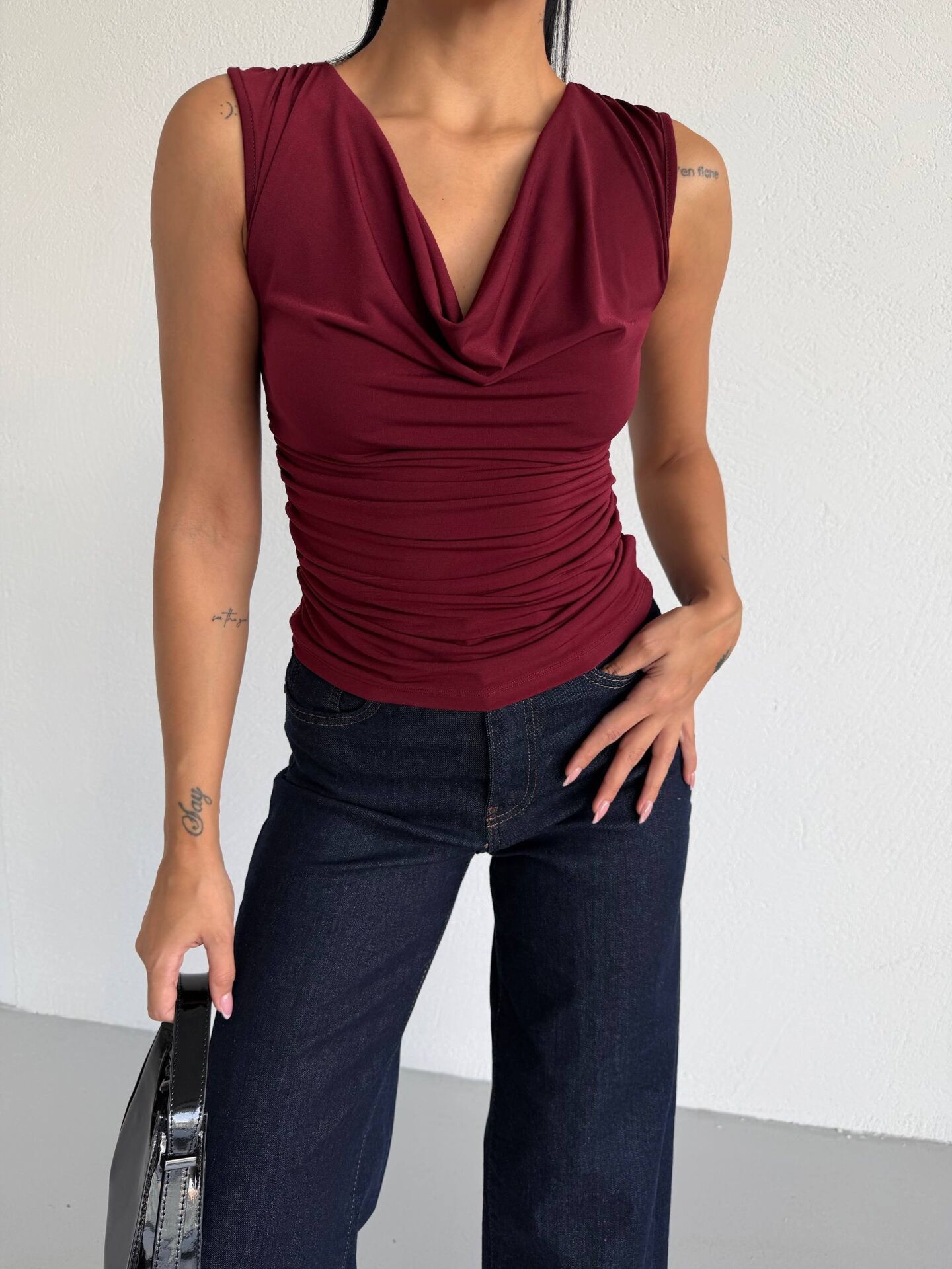 - Şık ve sade tasarımıyla her ortama uyum sağlayan düz desenli Sandy bluz. - Klasik yuvarlak yaka tasarımı ile zamansız bir görünüm sunar. - Yüksek kaliteli Sandy materyalden üretilmiş, konforlu ve dayanıklı yapısıyla öne çıkar. - Trend kolsuz tasarımı ile yaz aylarının vazgeçilmezi olacak. - Kolsuz kol boyu, serin ve rahat bir kullanım sağlar. - Dar kalıbı ile vücut hatlarınıza mükemmel uyum sağlar. - Normal boy uzunluğu, farklı pantolon ve eteklerle kolayca kombinlenebilir. - Genç ve dinamik kadınların tarzını yansıtan ideal bir seçimdir. - Denim kumaş tipi, dayanıklılığı ve şık görünümü bir arada sunar. - Türkiye'de üretilmiş olup, yerel işçiliğin kalitesini temsil eder.