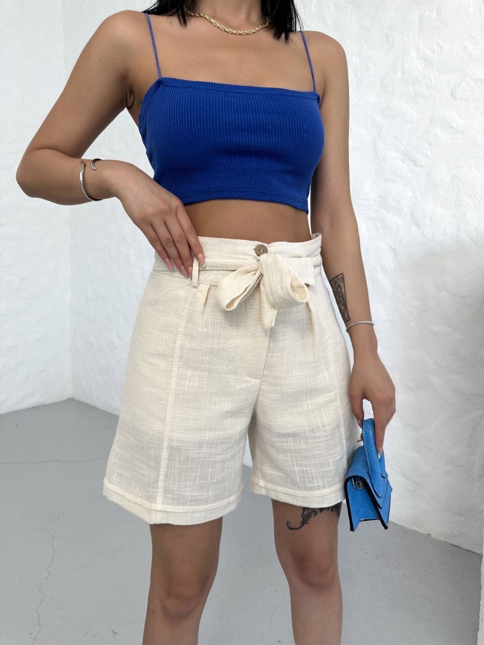 ÇİFT DÜĞMELİ ASTARLI KETEN ŞORT